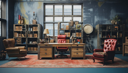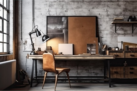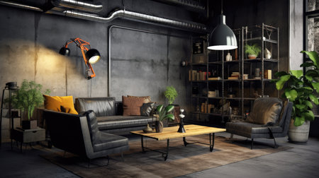 Inspiring office interior design Industrial style Lounge featuring Exposed pipes architecture. Generative AI AIG 31.