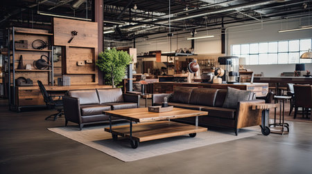 Spacious industrial workshop with abundant natural light and artisan tools. That the image is generated using AI.