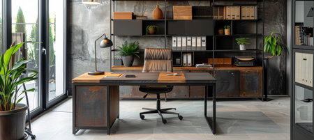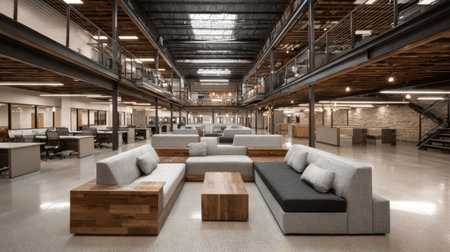Modern Open-Plan Office With Industrial Decor on a Sunny Day