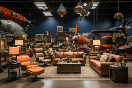 Furniture store interior with a variety of chairs, tables, and cozy decor in a warm, inviting layout. Generative AI