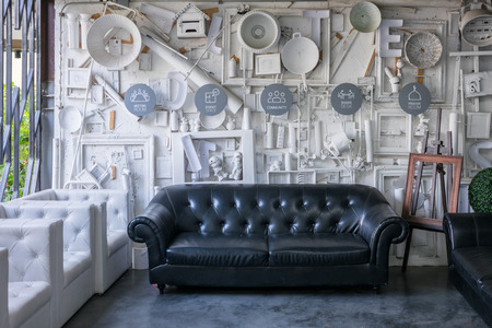 Decorating Living room interior in loft, industrial style, Coffee shop restaurant office work space, Loft empty room 3d render backgrounds