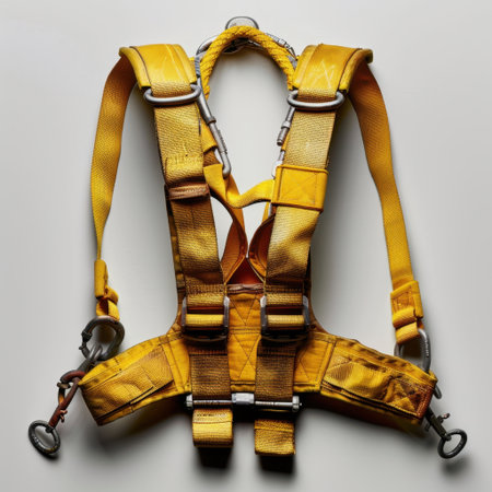 Detailed macro shot of a safety harness in use, demonstrating its sturdiness and durability