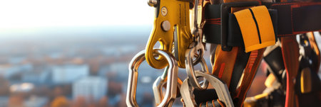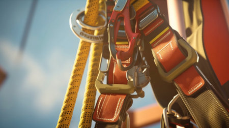 Construction safety equipment for work at height, safety harness and a seat belt closeup. Generative AI