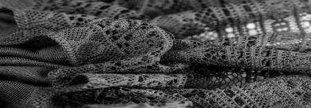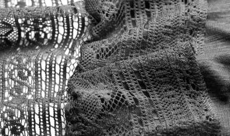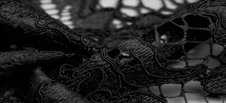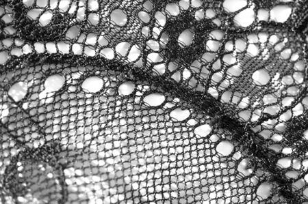 Background, texture, pattern, black lace fabric, thin open fabric, usually made of cotton or silk, made using loops, twisting or knitting threads in patterns