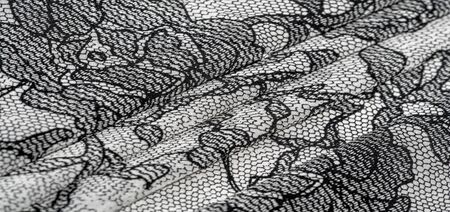 black lace fabric, sexy retro negligee material. Vintage lingerie ornament. background texture, pattern.