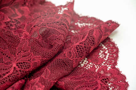 red lace. Elastic fashionable textile jacquard lace. Decorative item for sexy lingerie. elastic tapes. Home decor. Texture for your design. background. template.