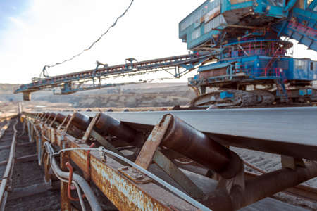 Conveyor console of the spreader during operation. Transportation of an empty rock to a dump
