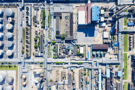 Aerial view of oil refinery at sunset in Shanghai,China.