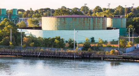 Le Havre, France - August 8, 2021: Tanks and reservoirs for storing fuel and liquids in the port 2000 of Le Havre in Normandy