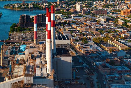 A chimney chemical plant in the discharge of pollutants, Industry Pipes Pollute the Atmosphere With Smoke