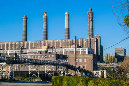 old heat and power plant with historic chimneys in Bytom Miechowice