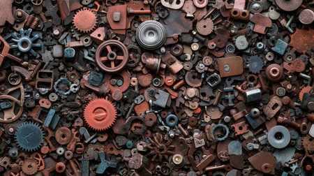 A visually striking arrangement of various mechanical components and parts showcases the intricate details of industrial design and engineering.