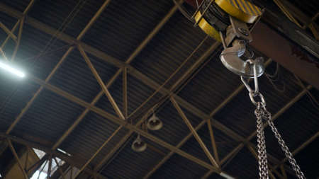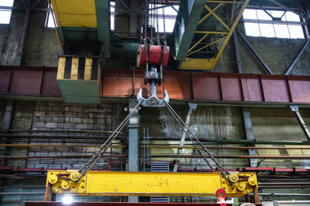 Big hook at a metallurgical plant. Heavy industry concepts. Mechanisms of a metallurgical plant. Background factory for the production of metal.