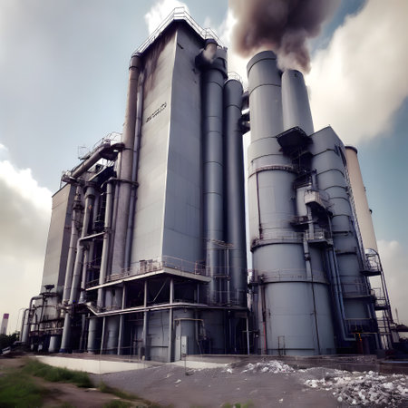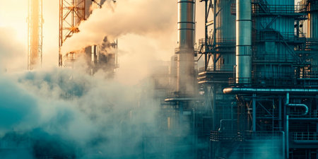 chemical plant with smoke billowing from the chimneys, symbolizing industry and progress, created with generative ai