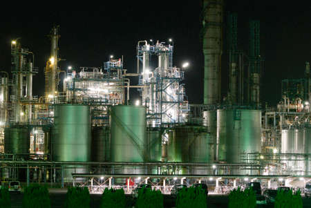 Night view of a factory in Otake City, Hiroshima Prefecture