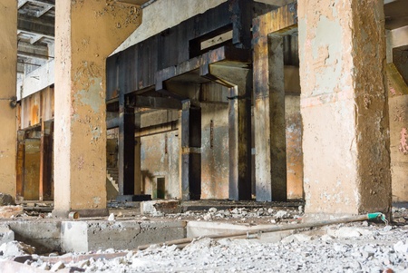 Part of destroyed industrial building at demolition site