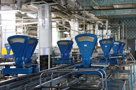 The workshop production of canned products with the old blue scales at the cannery