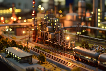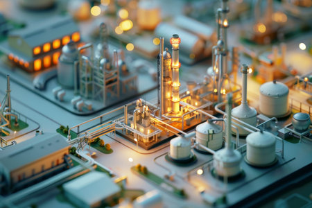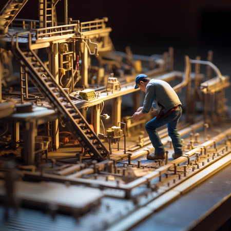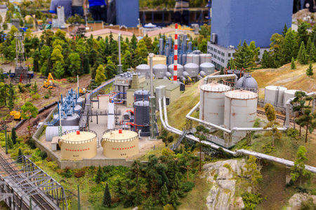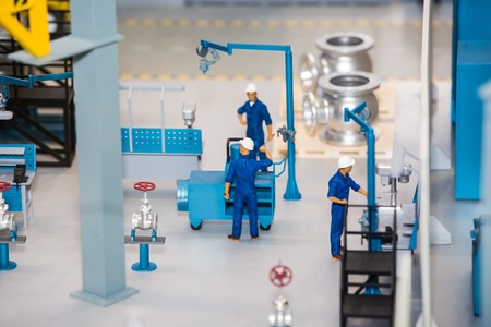 Scale model of industrial plant with worker working at the machine