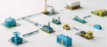 Isometric illustrations depicting oil gas-related equipment and facilities within the energy sector