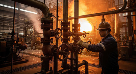 Industrial worker at work in oil and gas industry. Concept of heavy industry.