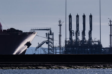 LNG TANKER AND TERMINAL - The ship is maneuvering in gas port