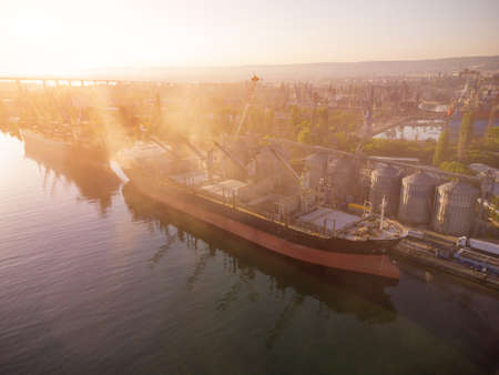BULK CARRIER - freighter at the transhipment terminal in a seaport