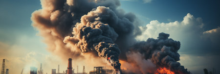 AI Generated. Smoke billowing upwards in a massive dark plume