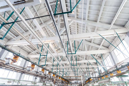Interior of a modern industrial factory. Factory production line. Industrial background