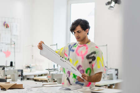 creative fashion designer holding sewing patter while working in tailor shop