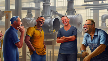 workers talking and laughing at a factory Labor Day and the importance of workers AI Generated
