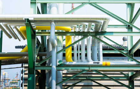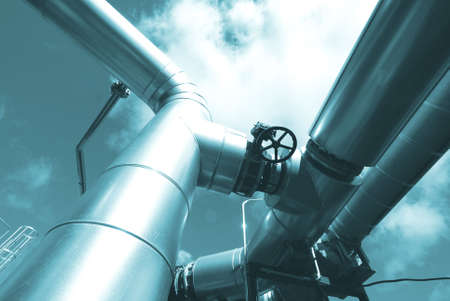 CHP pipe. Boiler room for hot water and central city heating. Background