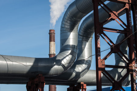 Close-up photo shot. Above ground heat pipes for urban communications.
