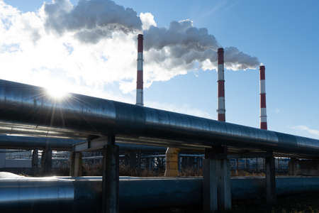 Smoke coming from the pipe of a thermal power plant. Natural gas used for heating and electricity generation.