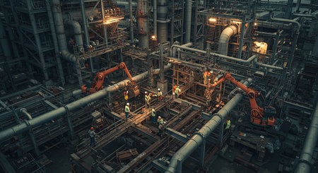 Modern steel factory uses automated machinery and robotics generated by artificial intelligence