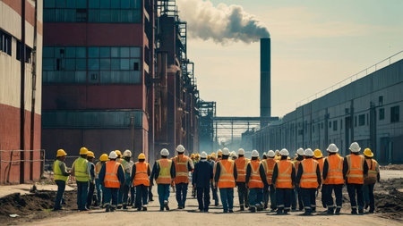 a busy factory floor with workers operating machinery and moving materials, created with generative ai