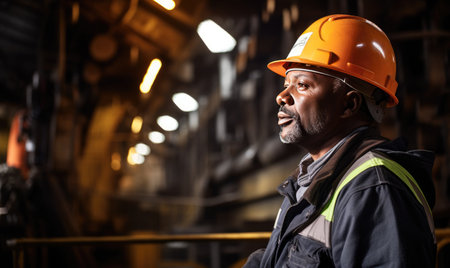 Portrait of African-American worker in industrial plant, stock photo