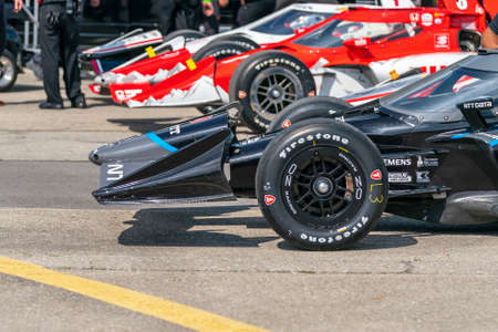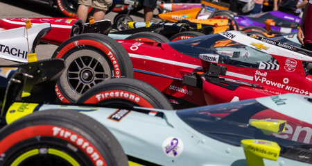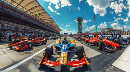 IndyCar Race Cars Parked on Pit Lane at Indianapolis Motor Speedway Before Race Day