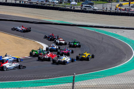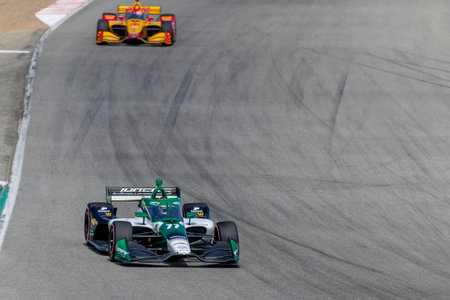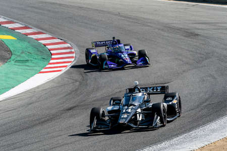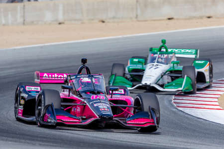 INDYCAR Series driver, STING RAY ROBB (R) (51) of Payette, Idaho, travels through the turns during a practice session for the Firestone Grand Prix of Monterey at WeatherTech Raceway Laguna Seca in Monterey CA.