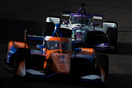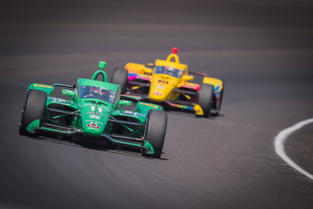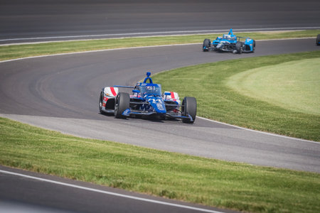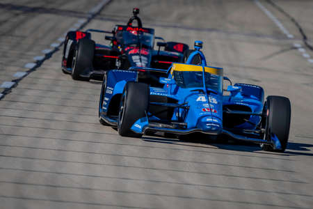 ALEX PALOU (R) (55) of Barcelona, Spain races through the turns during the race for the GMR Grand Prix at Indianapolis Motor Speedway in Indianapolis, Indiana.