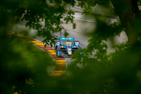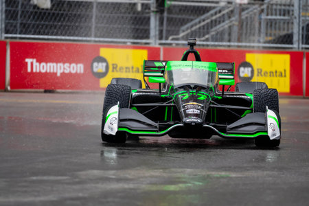 NTT INDYCAR SERIES driver, ROBERT SHWARTZMAN (83) (R) (ISR) of Tel Aviv, Israel, travels through the turns during a practice session for the Ontario Honda Dealers Indy Toronto at Exhibition Place in TORONTO ON.