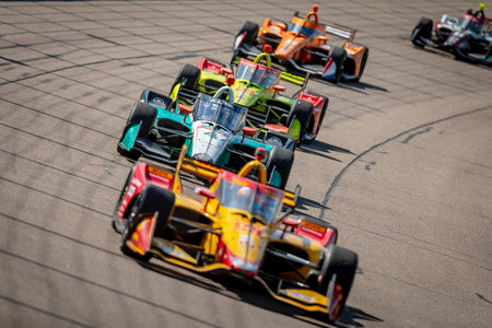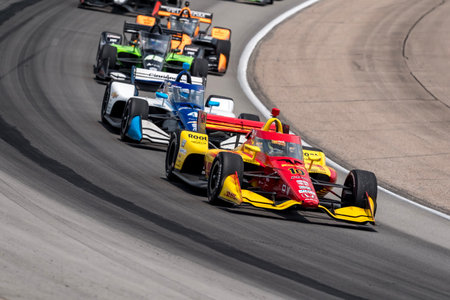 INDYCAR Series driver, PATO OWARD (5) of Monterey, Mexico, races through the turns during the Bommarito Automotive Group 500 at World Wide Technology Raceway in Madison IL.