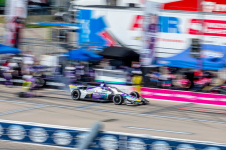 NTT INDYCAR SERIES driver, SANTINO FERRUCCI (14) (USA) of Woodbury, Conneticut, comes off pit road during the Bommarito Automotive Group 500 at World Wide Technology Raceway in Madison IL.