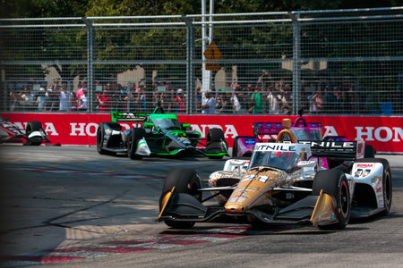 NTT INDYCAR SERIES driver, COLTON HERTA (26) of Valencia, California races through the turns during the Detroit Grand Prix on the Streets of Detroit in Detroit, MI.