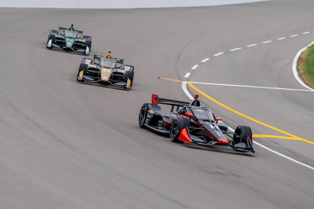 INDYCAR Series driver, KYLE KIRKWOOD (27) (USA) of Jupiter, FL, races through the turns during the Bommarito Automotive Group 500 at the World Wide Technology Raceway in MADISON IL.