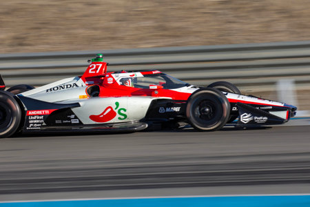 NTT INDYCAR SERIES driver, KYLE KIRKWOOD (27) (USA) of Jupiter, FL, races through the turns during the The Thermal Club INDYCAR Grand Prix at the The Thermal Club in Thermal CA.