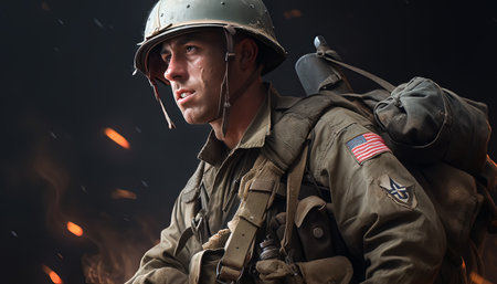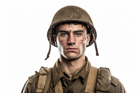 Historical portrait of a world war 2 army soldier wearing military uniform