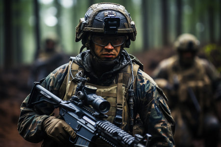Brave army soldiers in camouflage uniform fighting for their country generated by artificial intelligence