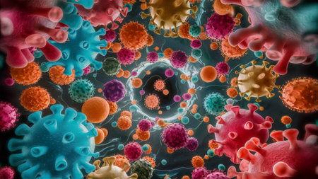 3d illustration abstract viral infection causing chronic disease. coronavirus, influenza virus H1N1, Flu, cell infect organism, aids. Virus abstract background.