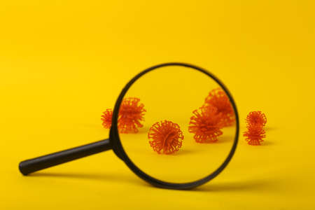 Coronavirus cells. Group of viruses that cause respiratory infections under the microscope. 3D rendering 3D illustration 3D illustration