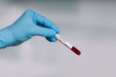 COVID-19 blood test in test-tube, sample of blood testing for diagnosis new Corona virus infection